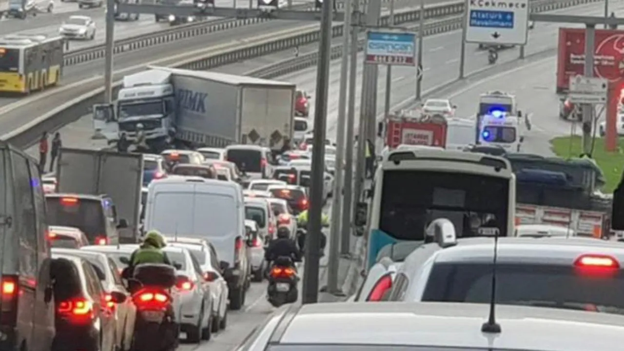 Haramidere'de E-5'te kontrolden çıkan tır, metrobüs bariyerlerine çarparak durdu. Feci kazada sürücü hafif şekilde yaralanırken, bölgede trafik yoğunluğu oluştu.