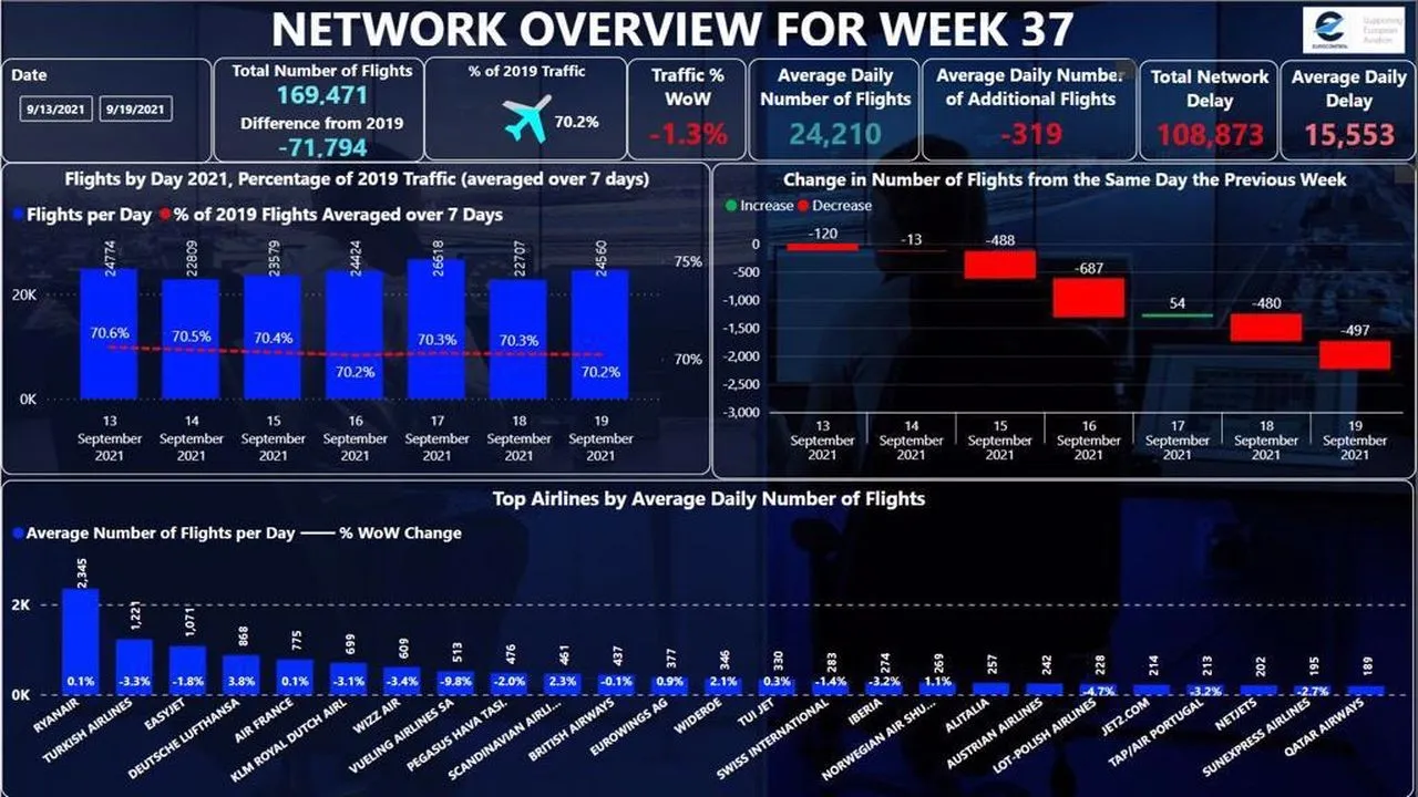 Avrupa Hava Seyrüsefer Emniyeti Teşkilatının (EUROCONTROL), 13-19 Eylül'deki hava trafiği verilerine göre, Avrupa'da 169 bin 471 uçuş icra edildi.