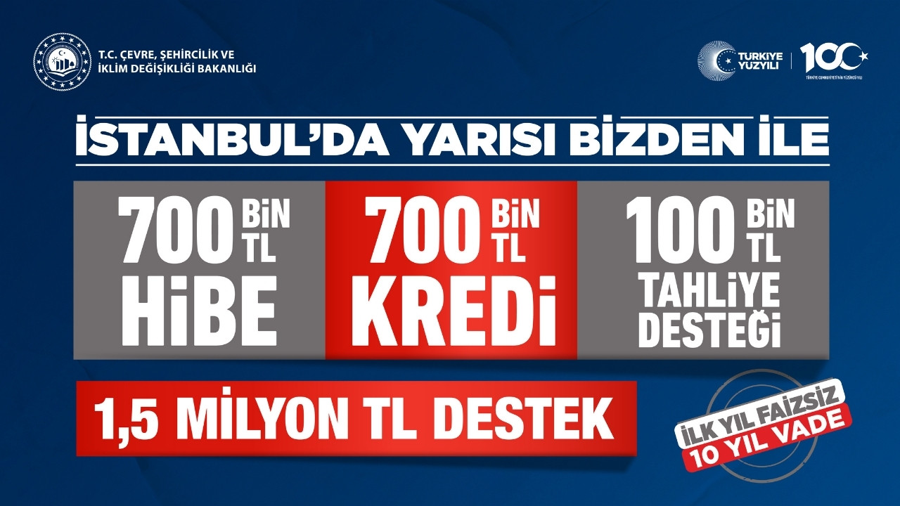 Çevre, Şehircilik ve İklim Değişikliği Bakanlığı, olası Marmara depremine karşı İstanbul’u yüzyılın dönüşümüne hazırlıyor. ‘Yarısı Bizden’ kampanyası ile vatandaşa 700 bin lirası hibe, 700 bin lirası kredi ve 100 bin lirası da tahliye desteği olmak üzere toplam 1.5 milyon lira destek sağlayan Bakanlık, İstanbul’da yüzyılın dönüşümünü gerçekleştirmek için gece gündüz çalışıyor.