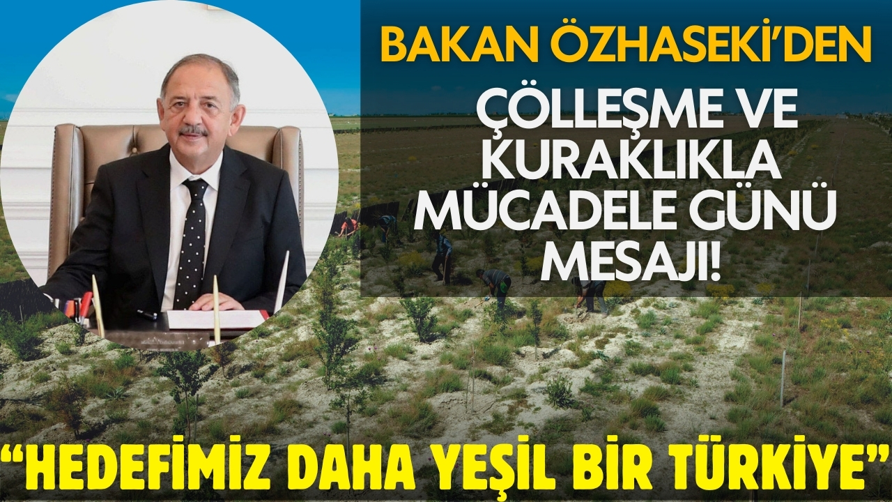 Sürdürülebilir bir yaşam için, toprağın öneminin farkında olduklarını vurgulayan Bakan Özhaseki, “Bakanlık olarak bir gün değil yılın 365 günü çölleşmenin dünyada sebep olduğu etkilerin anlaşılması için yaptığımız farkındalık çalışmalarıyla toprağımıza sahip çıkmanın gayreti içerisindeyiz. Ulusal ve uluslararası düzeyde yaptığımız her çalışmayla birlikte iklim değişikliğiyle mücadelemizi sürdüreceğiz. Çölleşmeyle mücadeleye yönelik yapılan tüm çalışmaların yanındayız. Hedefimiz daha yeşil bir Türkiye.” dedi.