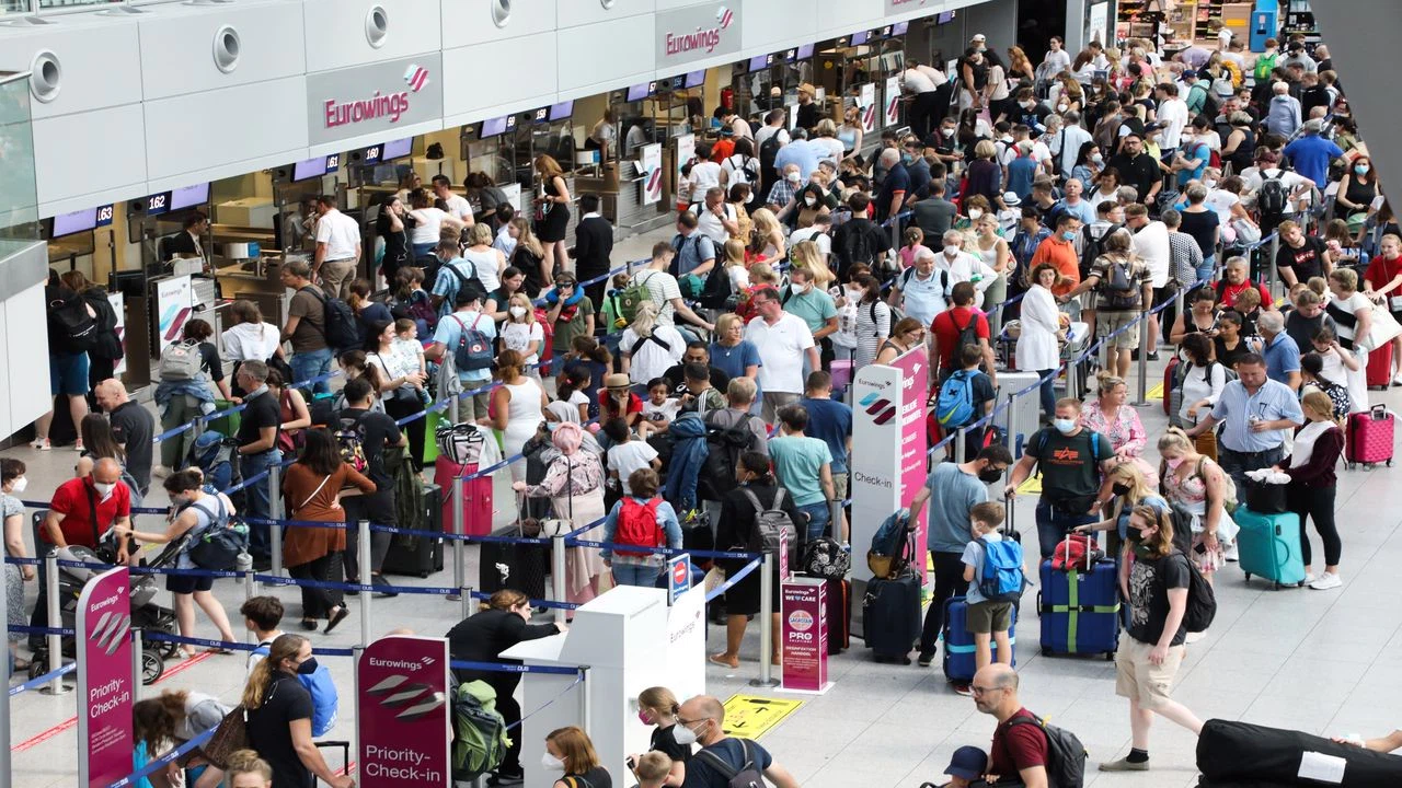 Düsseldorf Havalimanı'nda tatil bölgelerine gitmek isteyen Almanlar, Türkiye'ye izne gitmek isteyen Türkler ve hac vazifesini yerine getirmek için kutsal topraklara gidecek olanların uzun süre beklemesi gerekti.
