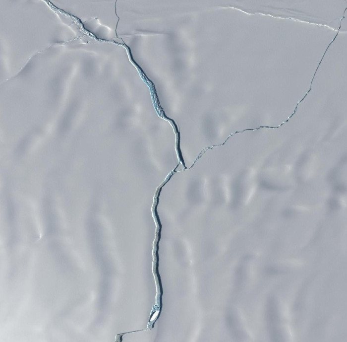 Avrupa Birliği Yeryüzü Gözlem Programı Copernicus'a ait Sentinel 2 uydusu tarafından buzulun çatlağı uzaydan fotoğraflandı. İngiliz Antarktika Araştırması (BAS) uzmanları, derin yarıklardan oluşan çatlağı havadan görüntüledi.