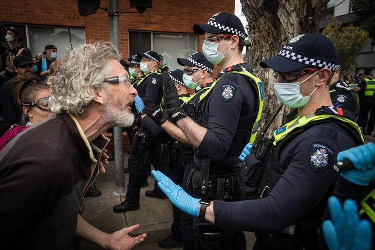 Avustralya'da yeni tip koronavirüsün (Kovid-19) Delta varyantına karşı sıkı tedbirlerle mücadele sürerken, yürürlükteki yasakları Protesto eden göstericilerle polis arasında çatışmalar çıktı.