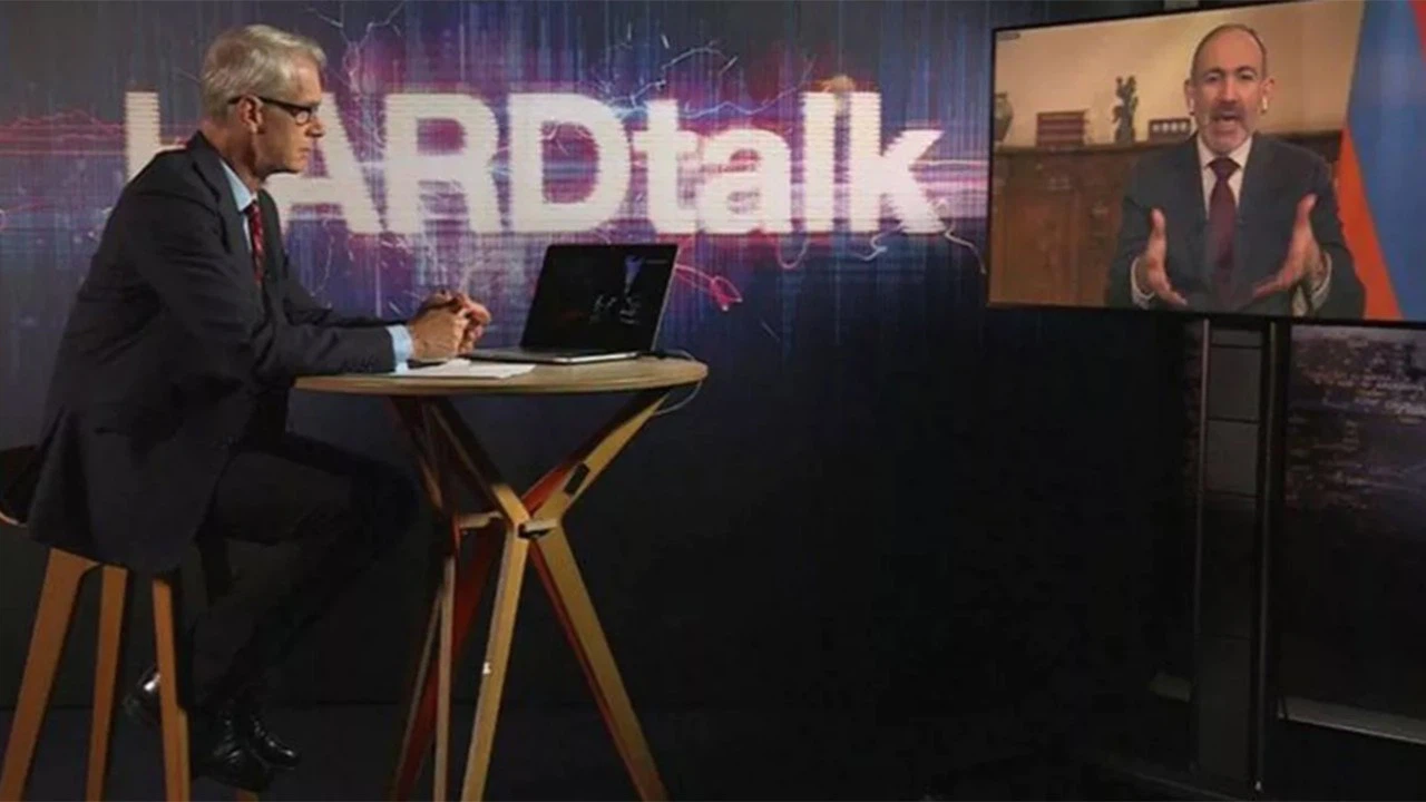 Sunucu Stephen Sackur'un soruları karşısında terleyen ve cevap vermekte zorlanan Paşinyan, konuyu sürekli geçiştirdi.