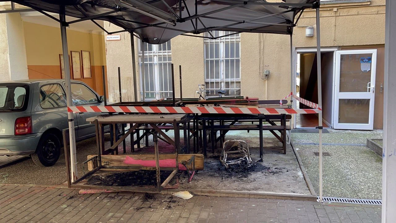 Avluda bulunan masa ve sandalyelerin yandığı, kimsenin zarar görmediği belirtilen açıklamada, mevcut bulgulara göre bunun kundaklama olduğunun varsayıldığı kaydedildi.