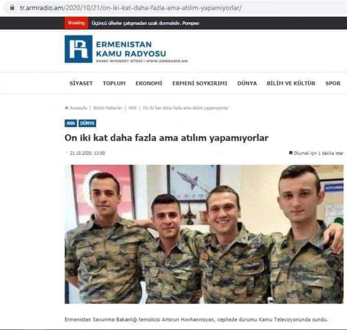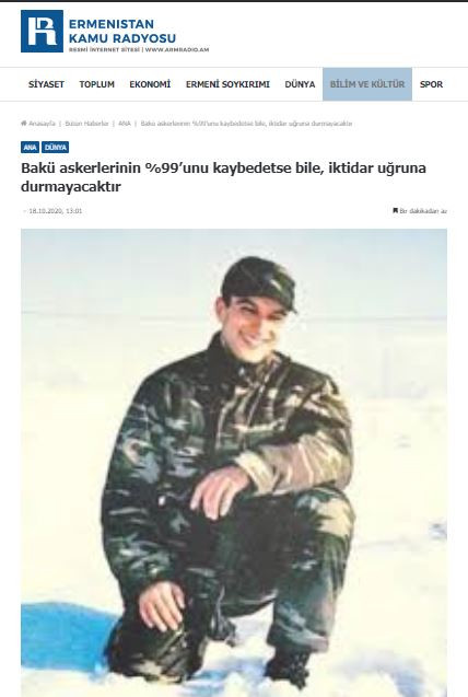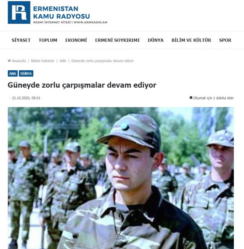 11 dilde yayın yapan kurumun tr.armradio.am adresli Türkçe sitesinde "Günlere göre öldürülen Azerbaycan askerlerinin sayısı" başlıklı bir haber yayımlandı. 27 Eylül-15 Ekim tarihleri arasında 5 bin 839 Azerbaycan askerinin öldürüldüğü iddia edilen haberde fotoğraf olarak popçu Serdar Ortaç ile oyuncu Kaan Girgin'in fotoğrafı kullanıldı.