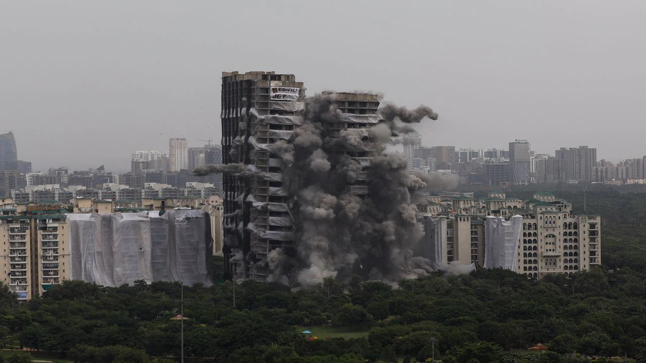 Hindistan'da başkent Yeni Delhi yakınlarındaki yerleşim bölgesindeki iki kaçak gökdelen mahkeme kararı sonrası yıkıldı.