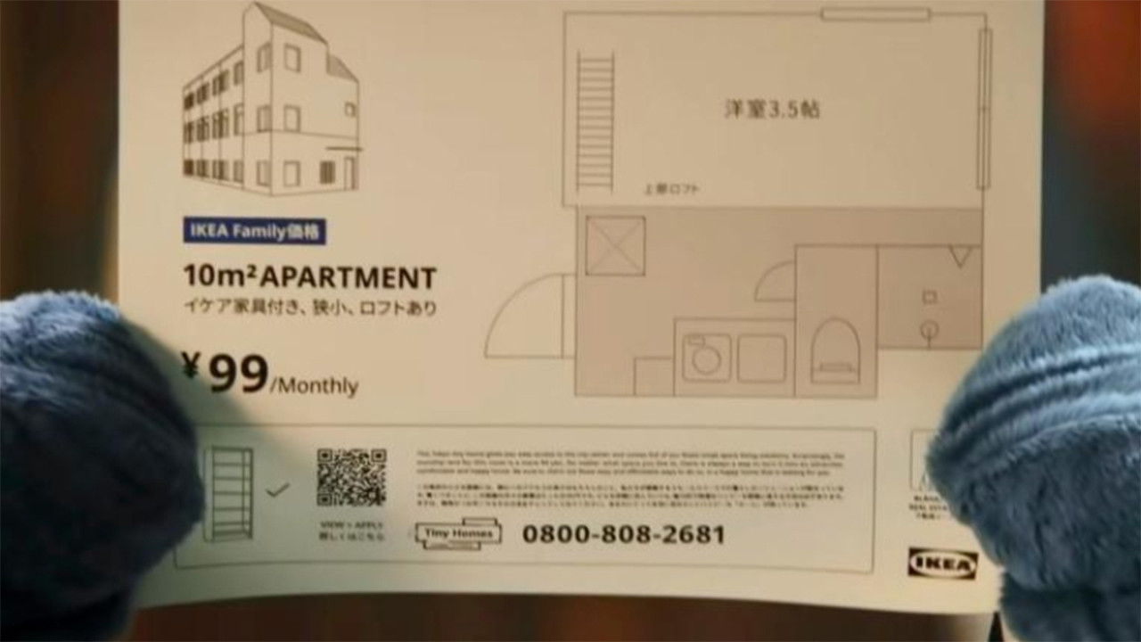 10 metrekarelik daire Shinjuku'da bulunuyor. IKEA, dairenin aylık kirasının 99 yen, yani ayda bir dolardan daha az olacağını duyurdu.
