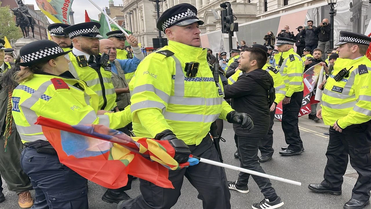 Kısa süreli arbede yaşanan müdahale sırasında en az 3 PKK yandaşı gözaltına alındı.