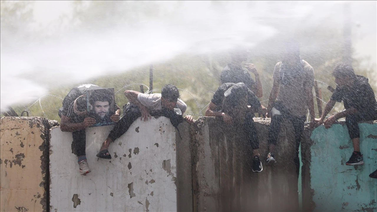 Güvenlik güçleri tazyikli su ve ses bombasıyla göstericilere müdahale ediyor.