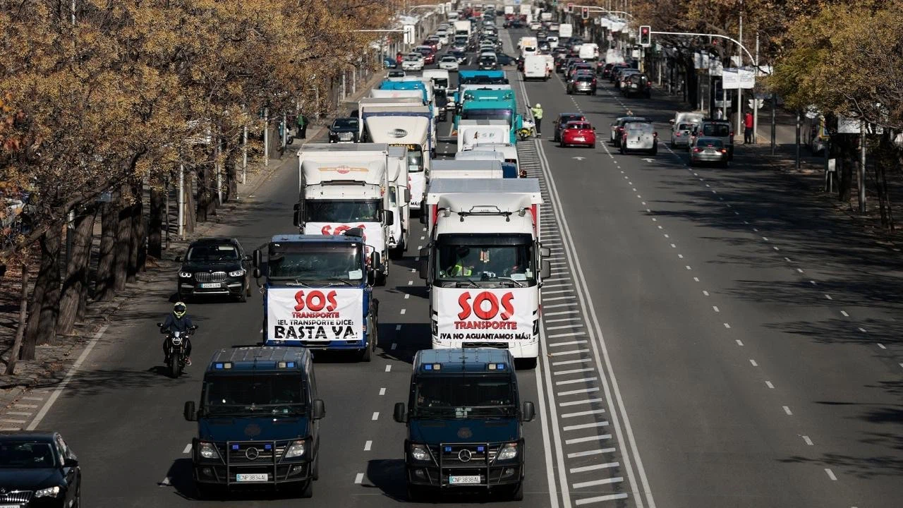 Grev dolayısıyla başkent Madrid'de gösteri düzenleyen kamyoncular, ayrıca yollarda trafiği yavaşlatma eylemi yaptı.