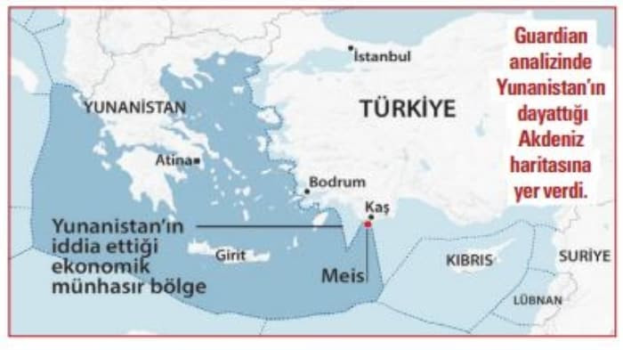 İngiliz Guardian gazetesi, Türkiye’nin en uzun kıyılara sahip olmasına rağmen, Yunanistan’ın Ege’yi Yunan denizine çevirme çabasını harita ve uzman görüşleriyle sorguladı. Gazetenin politika editörü Patrick Wintour imzasıyla yayınlanan analizde, Doğu Akdeniz’deki gaz rezervleri üzerindeki kavganın, Libya, İsrail, Mısır, Birleşik Arap Emirlikleri ve Fransa’nın katılımıyla büyüdüğüne işaret edilerek, bunun NATO Türkiye ve Yunanistan arasında ‘deniz çatışması’ endişesini arttırdığı belirtildi.