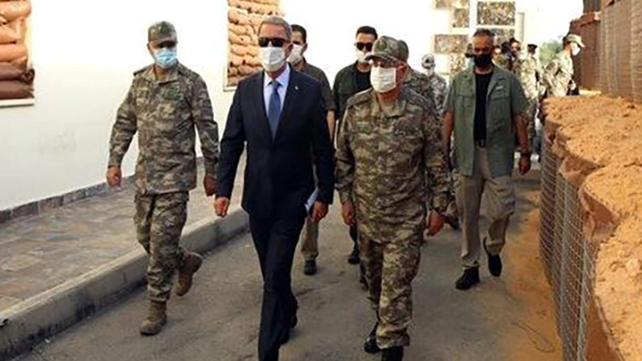 Türk askerleri ile bir araya geldi. BAKAN AKAR TRABLUS'TA: