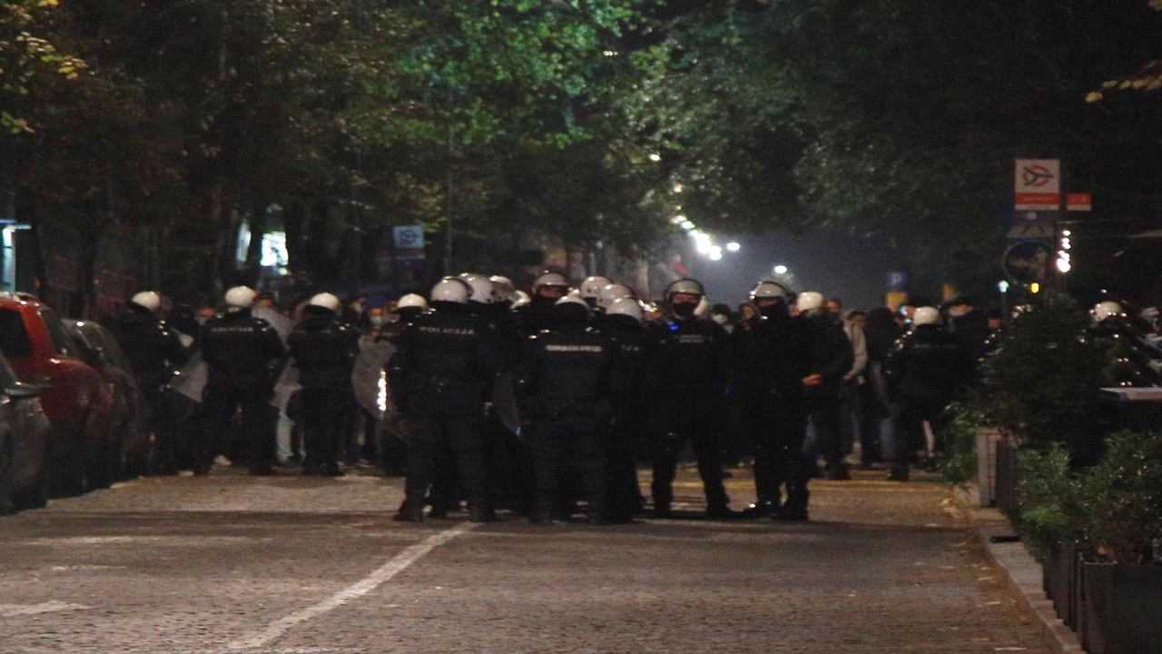 Sırbistan İnsan Hakları Gençlik Hareketi (YIHR) tarafından kaldırılmak istenen ancak İçişleri Bakanlığının koruma altına aldığı duvar resmine kireç dökülmesinin ardından gerginliğin devam ettiği Belgrad'da toplanan kalabalık, Sırbistan'ın savaş suçlularını koruyan tavrını kınadı.