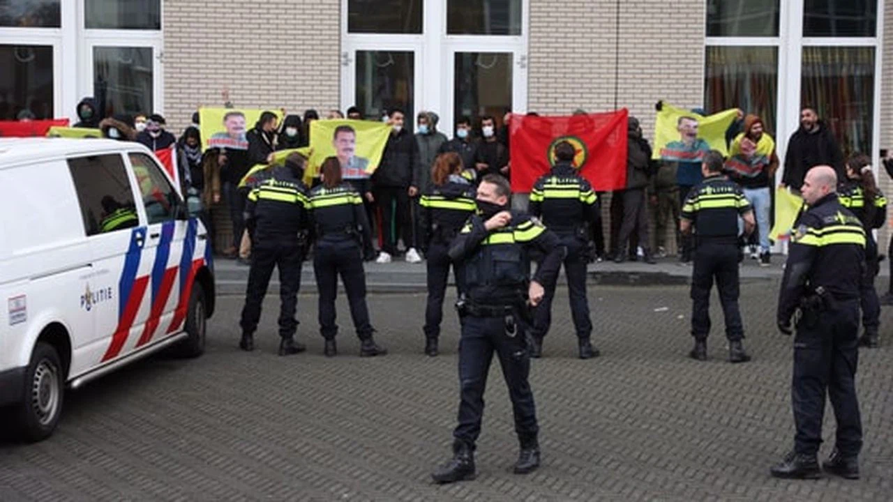 Türkiye'ye karşı harekete geçilmesini istediği belirtilen terör örgütü yandaşları taşkınlık yaparak OPCW'nin Lahey'deki binasını basmaya çalışınca polisin müdahale ettiği aktarıldı.