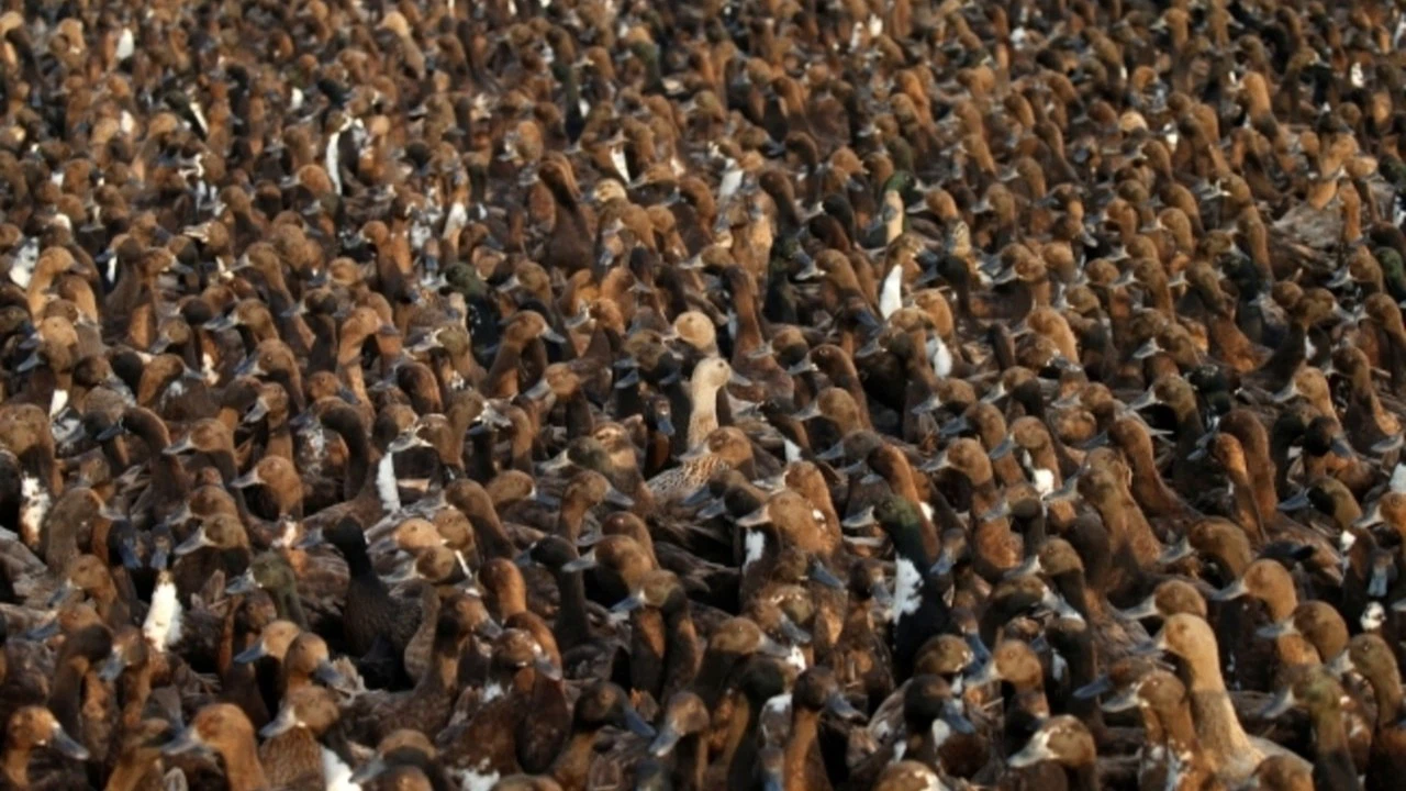 Tayland'da pirinç hasadının tamamlanmasının ardından, yaklaşık 10 bin ördek tarlalara bırakıldı. Ördeklerin görevi, ürünlere zarar veren böcek ve otları yemek.
