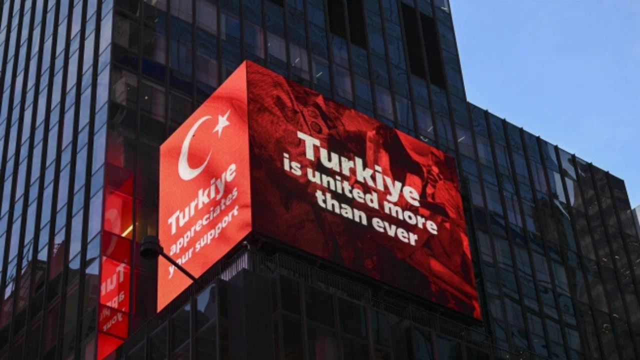 Kahramanmaraş merkezli depremlerde hayatını kaybeden binlerce kişiyi anmak, milli birliğe dikkat çekmek ve uluslararası dayanışmayı takdir etmek için New York'un Times Meydanı'ndaki ilan panolarında duygusal mesajlar paylaşıldı.