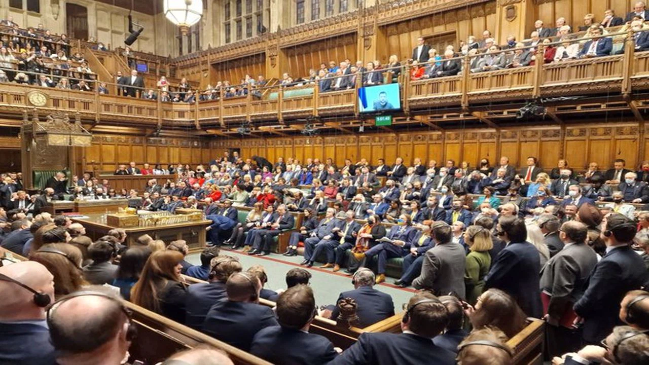 Zelenskiy, Ukrayna'nın başkenti Kiev'den video konferans yoluyla Avam Kamarası'nda İngiliz parlamenterlere hitap etti. Zelenskiy, konuşmasını Ukraynaca gerçekleştirdi ve milletvekillerine İngilizce simultane çeviri yapıldı.