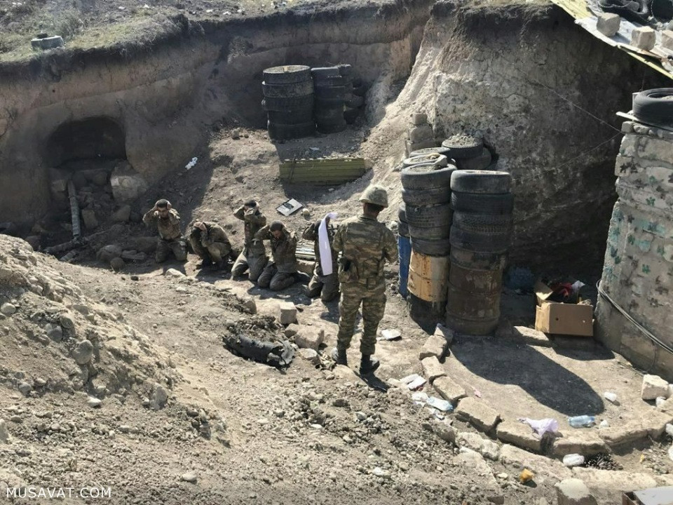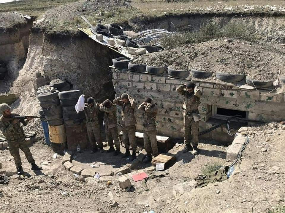 Dağlık Karabağ cephesinde bir grup Ermeni askeri esir alındı. Teslim olan Ermenistan askerlerinin beyaz bayrak salladığı dikkat çekti.