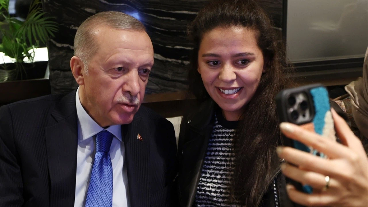 Doğum günü kutlamak için bir araya gelen gençlerle de sohbet eden Erdoğan, yaş günü kutlanan kişiyi tebrik etti.