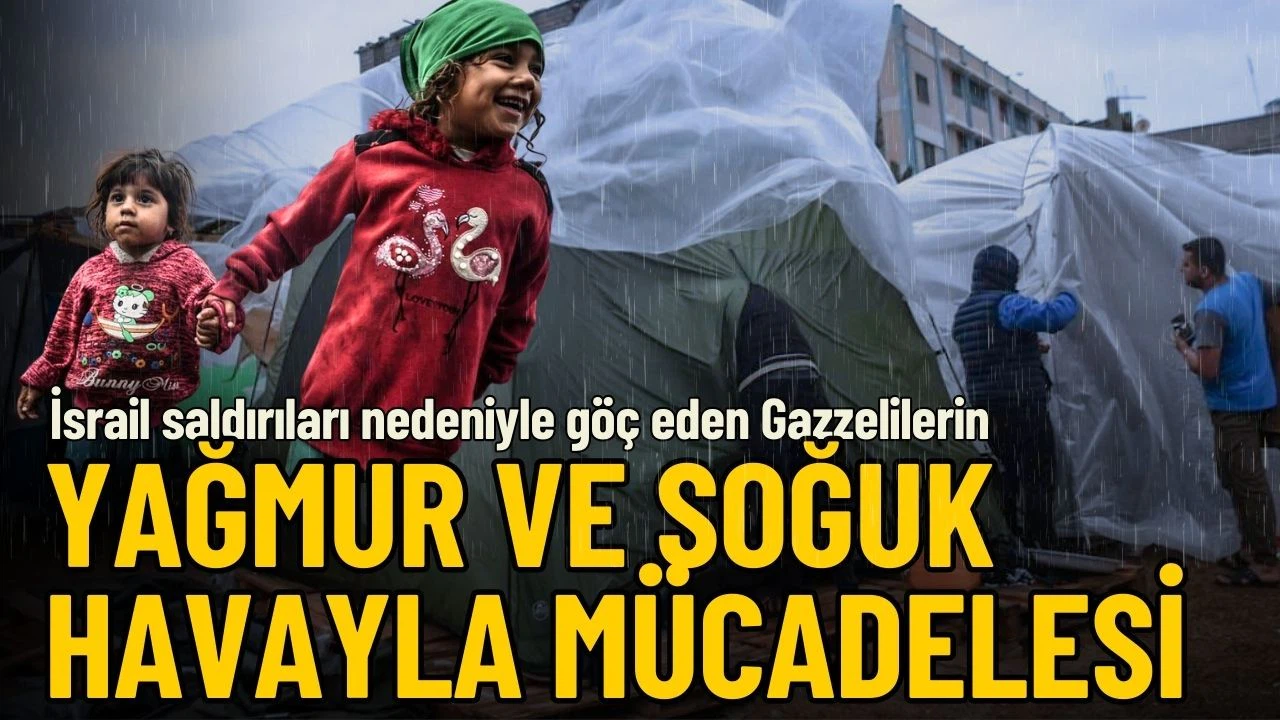 İsrail saldırıları nedeniyle göç eden Gazzeliler, yağmur ve soğuk havayla mücadele ediyor