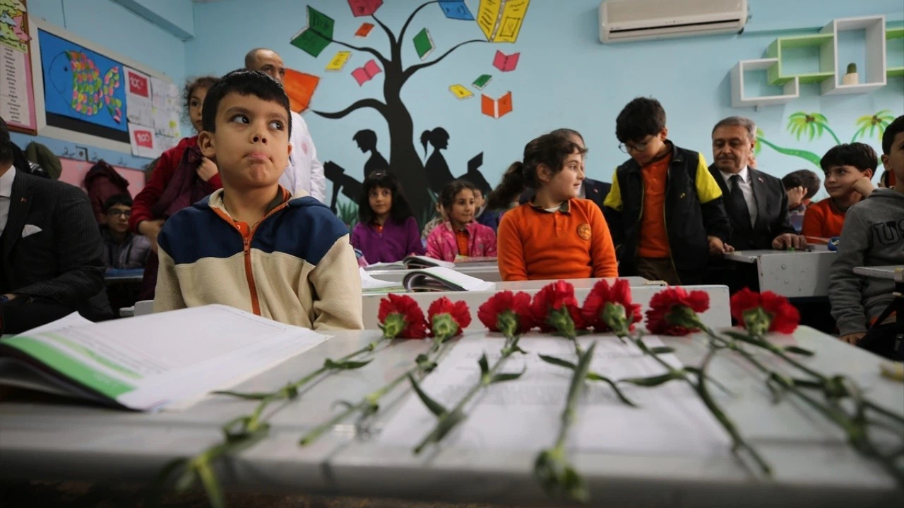 Kahramanmaraş merkezli depremlerden etkilenen Şanlıurfa'daki anma etkinlikleri kapsamında hayatını kaybeden öğrencilerin eğitim gördükleri sınıflara karanfil bırakıldı.