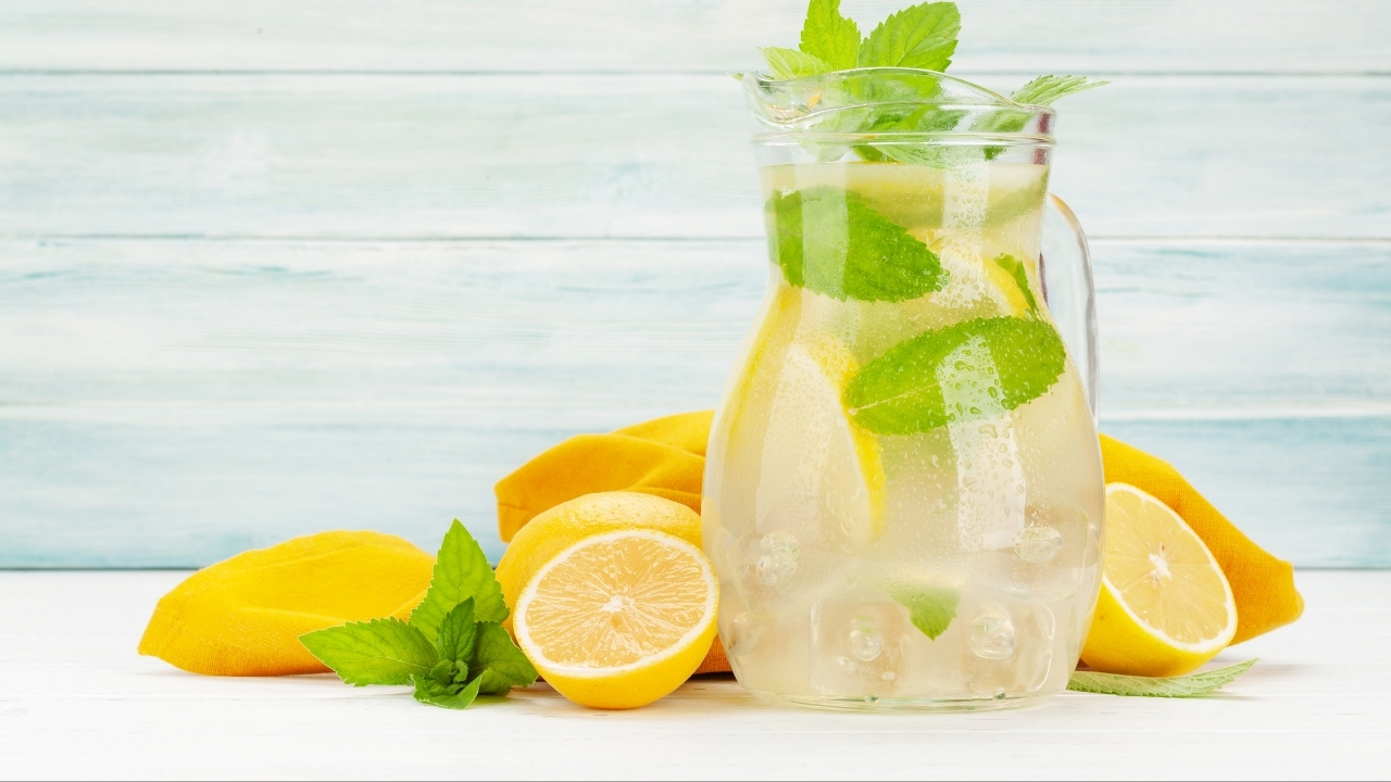 1/4 çay kaşığı tuz (isteğe bağlı)Buz küpleriLimon dilimleri ve nane yaprakları ile süslemek için (isteğe bağlı)