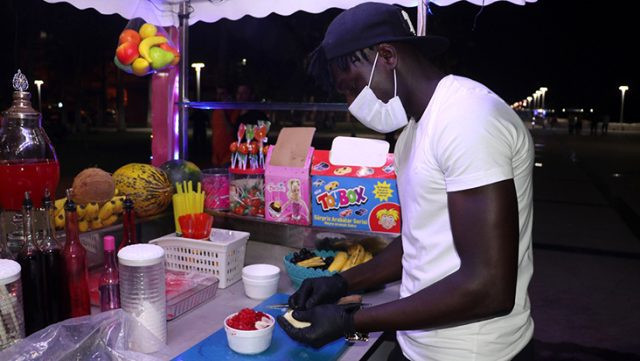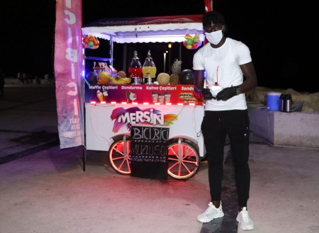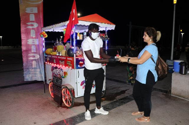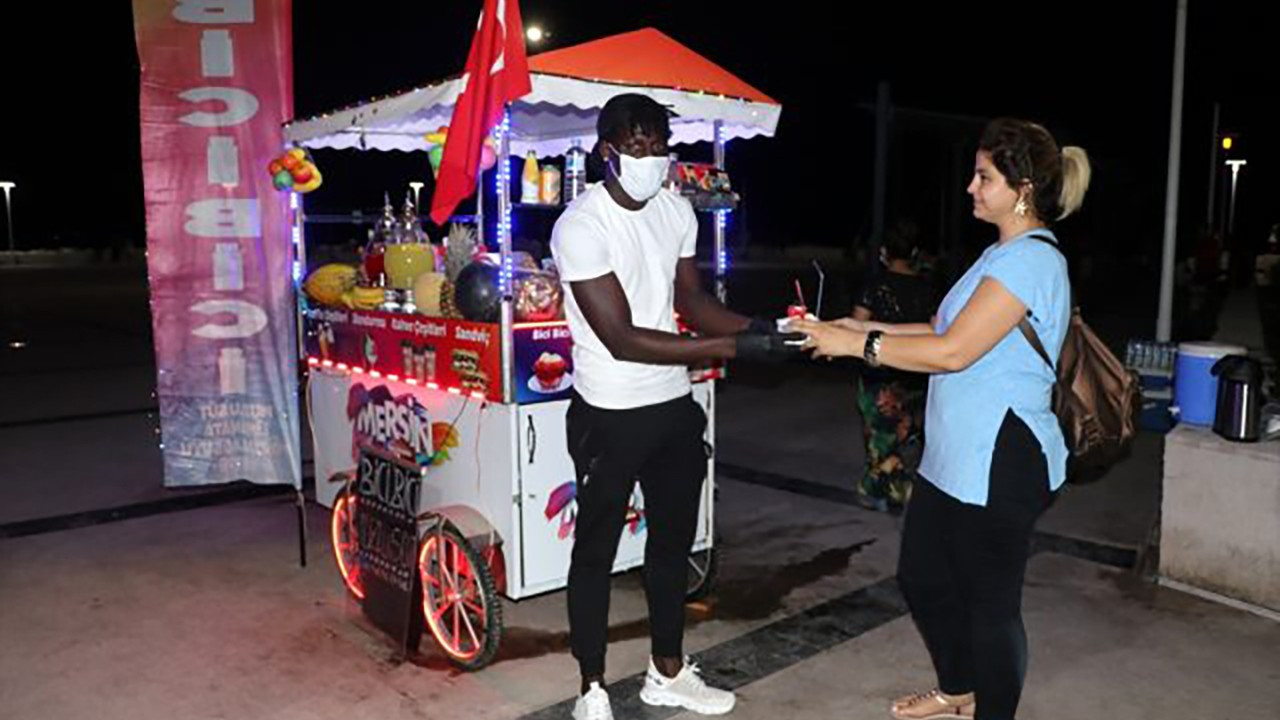 Mersin'de amatör bir futbol takımında oynayan Gambiyalı futbolcu Yahya Jarju, kulüpten kazandığı parayı az bulunca takımdan ayrılarak tezgahta yöresel tatlı "bici bici" satmaya başladı.
