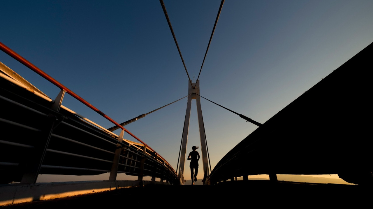 İzmir, Güzelyalı Köprüsü’nde sabah sporu yapan bir kadın.