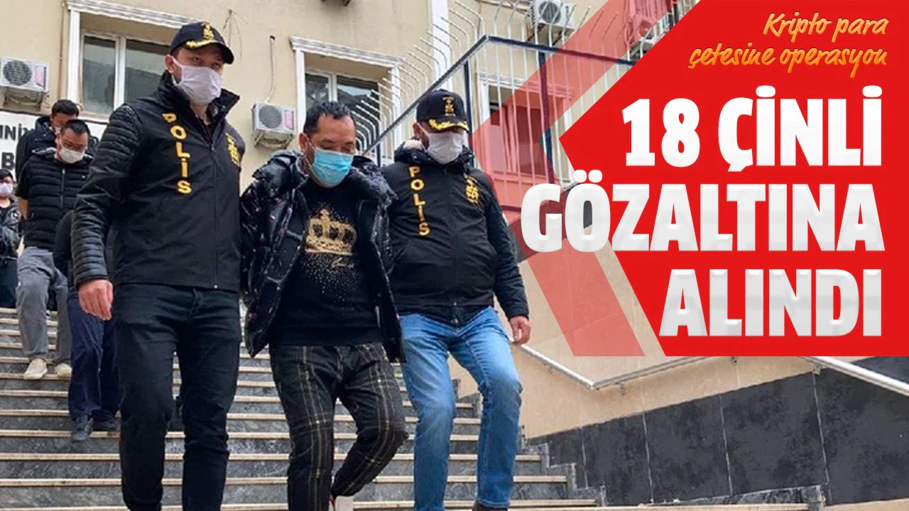 18 Çinli şüpheli, çalışma vaadiyle Çin’den bilgisayar mühendisi ve programcısı olmak üzere 101 kişi getirdi. Gelen kişilerin pasaportlarına el koyarak zorla çalıştıran şüpheliler, kişilerin sitenin dışına çıkmasını yasakladı. İnternet üzerinden Çin’e ‘kripto para danışmanlığı’ şeklinde reklam veren şüphelilerin, dolandırdıkları kişilere “Sanal paranızı bize teslim edin, biz iki katını kazanıp geri size teslim verelim” dediği öğrenildi.