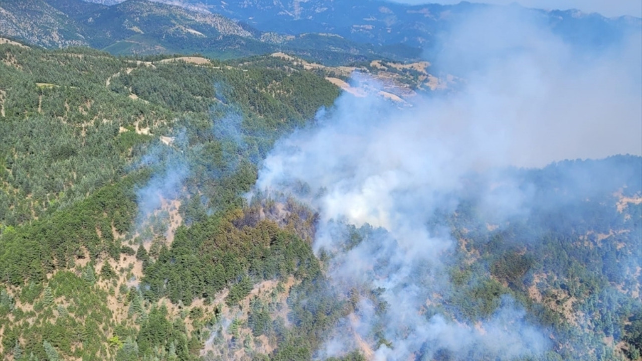 Ekiplerin, yangını kontrol altına almak için havadan ve karadan müdahalesi sürerken bölgedeki sarp arazi yapısı ve rüzgar, ekiplerin müdahalesini güçleştiriyor.