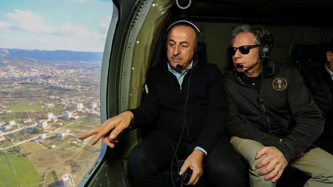 Dışişleri Bakanı Mevlüt Çavuşoğlu ve ABD Dışişleri Bakanı Antony Blinken, Kahramanmaraş merkezli depremlerden etkilenen bölgelerde incelemelerde bulunmak üzere Hatay'a hareket etti.