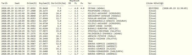— AFAD Deprem (@DepremDairesi) September 19, 2020