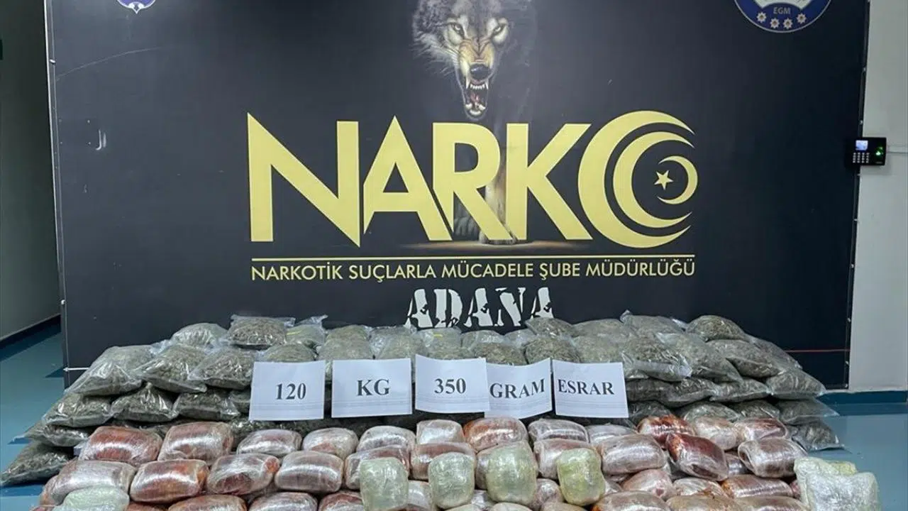 Tırda yapılan aramalarda, sürücü dinlenme alanındaki çanta ve poşetlerde 120 kilo 350 gram esrar bulundu.