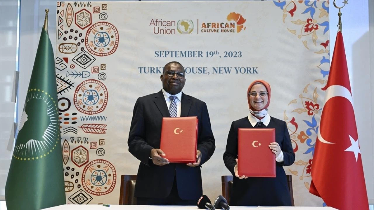 New York Türkevi'nde düzenlenen imza töreninde, Ankara merkezli Afrika Kültür Evi Derneği Direktörü Zeliha Sağlam ve Afrika Birliği'ni temsilen Büyükelçi Albert Muchanga, iki kurum arasında kararlaştırılan mutabakat metnine imza attı.