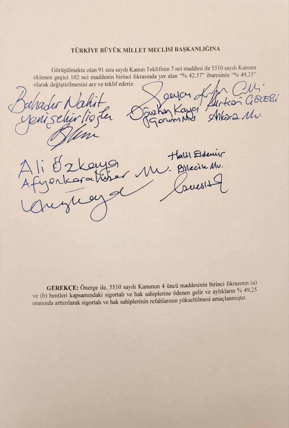 “Cumhurbaşkanımız Sayın Recep Tayyip Erdoğan’ın takdirleri ve AK Parti Grubu’muzun teklifleriyle emeklilerimizin maaş zamlarına ilişkin hazırlamış olduğumuz AK Parti Grup Önerimizi imzalayarak TBMM Başkanlığı’mıza sunduk.