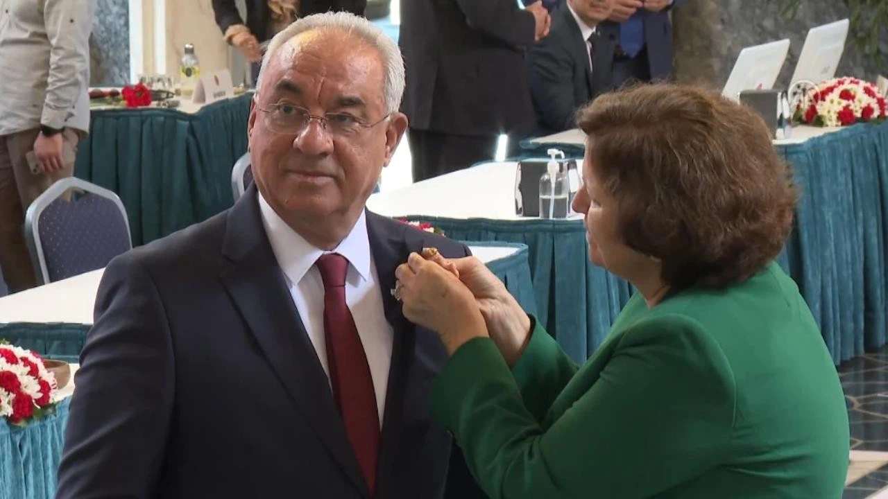 Kayıt işlemlerini tamamlayan Aksakal'ın, milletvekili rozetini eşi Feride Aksakal taktı.