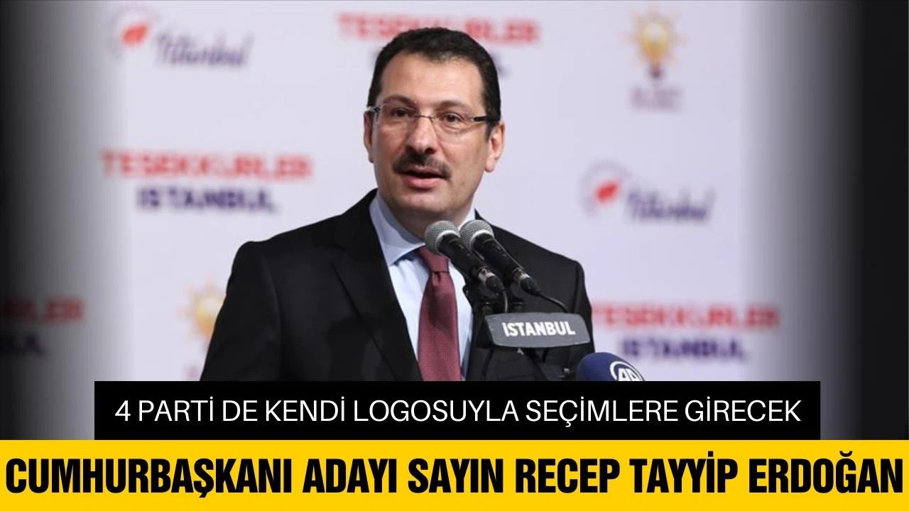 AK Parti Seçim İşlerinden Sorumlu Genel Başkan Yardımcısı Ali İhsan Yavuz, Cumhur İttifakı'na mensup 4 partinin kendi logosuyla seçime gireceğini belirterek, "Ancak 4 partinin de ortak cumhurbaşkanı adayı Sayın Recep Tayyip Erdoğan olacak." dedi.