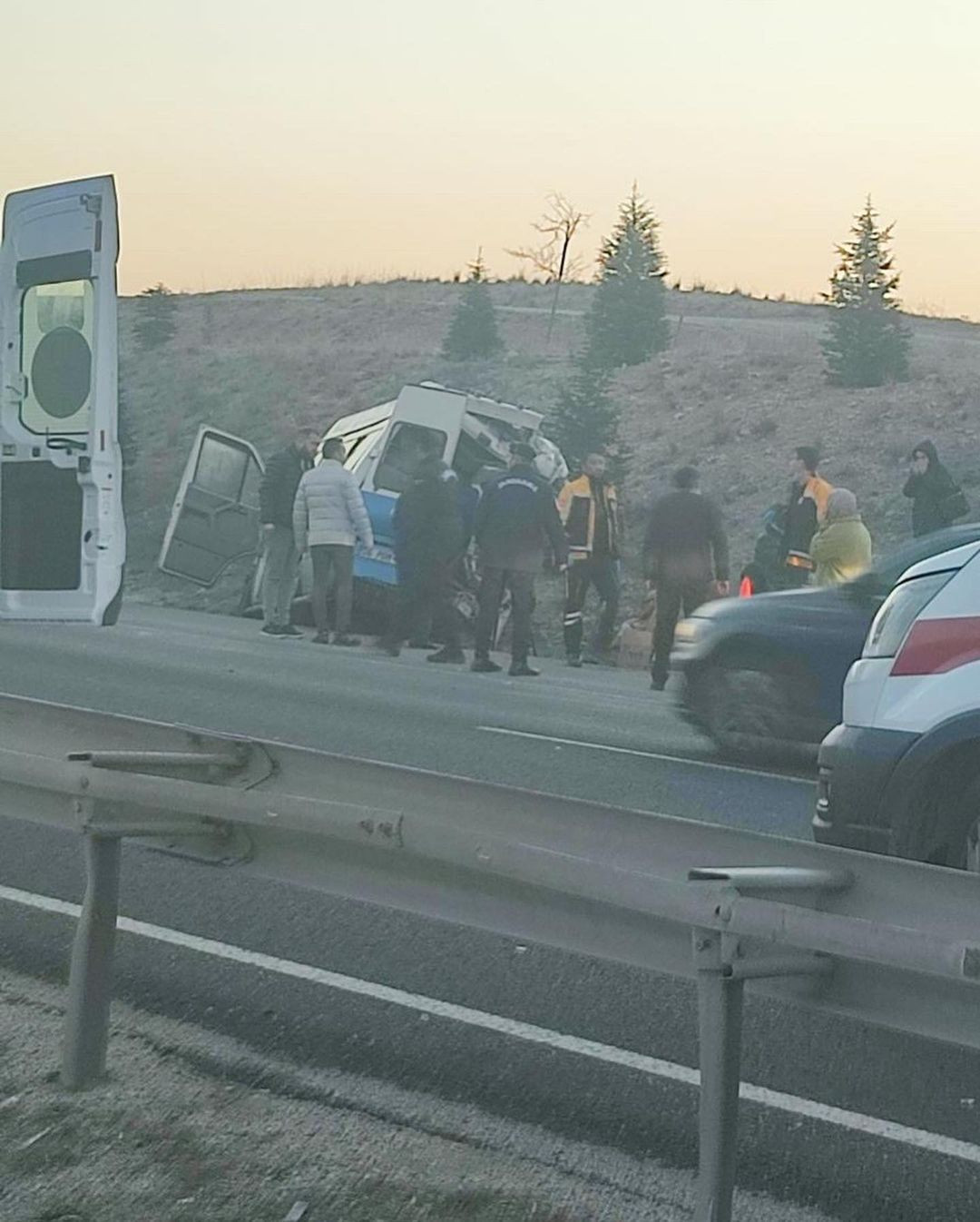Ankara Eskişehir yolunda, Temelli mevkinde işçi taşıyan minibüs kaza yaptı.