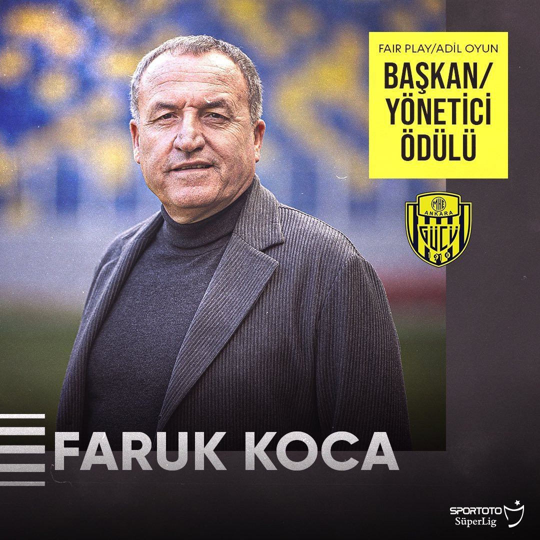 Hakem Halil Umut Meler’e yumruk atan Ankaragücü Başkanı Faruk Koca’ya TFF tarafından, Ekim ayının “En Adil Yönetici” fair play ödülü verilmişti.