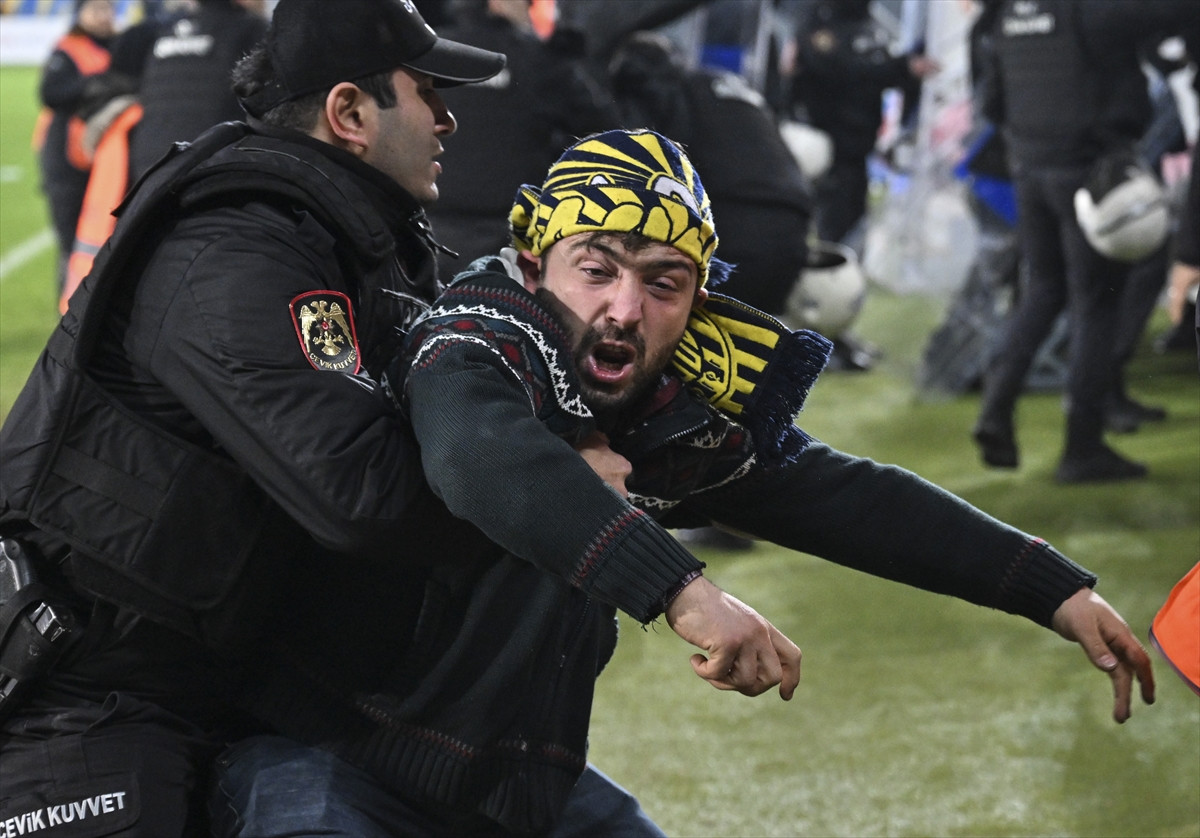 Bu sırada MKE Ankaragücü taraftarı başkanları Faruk Koca'ya destek vererek tezahürat yaptı. Tribünlerden de sahaya giren taraftarlar oldu. Bu taraftarlara güvenlik görevlileri müdahale etti.