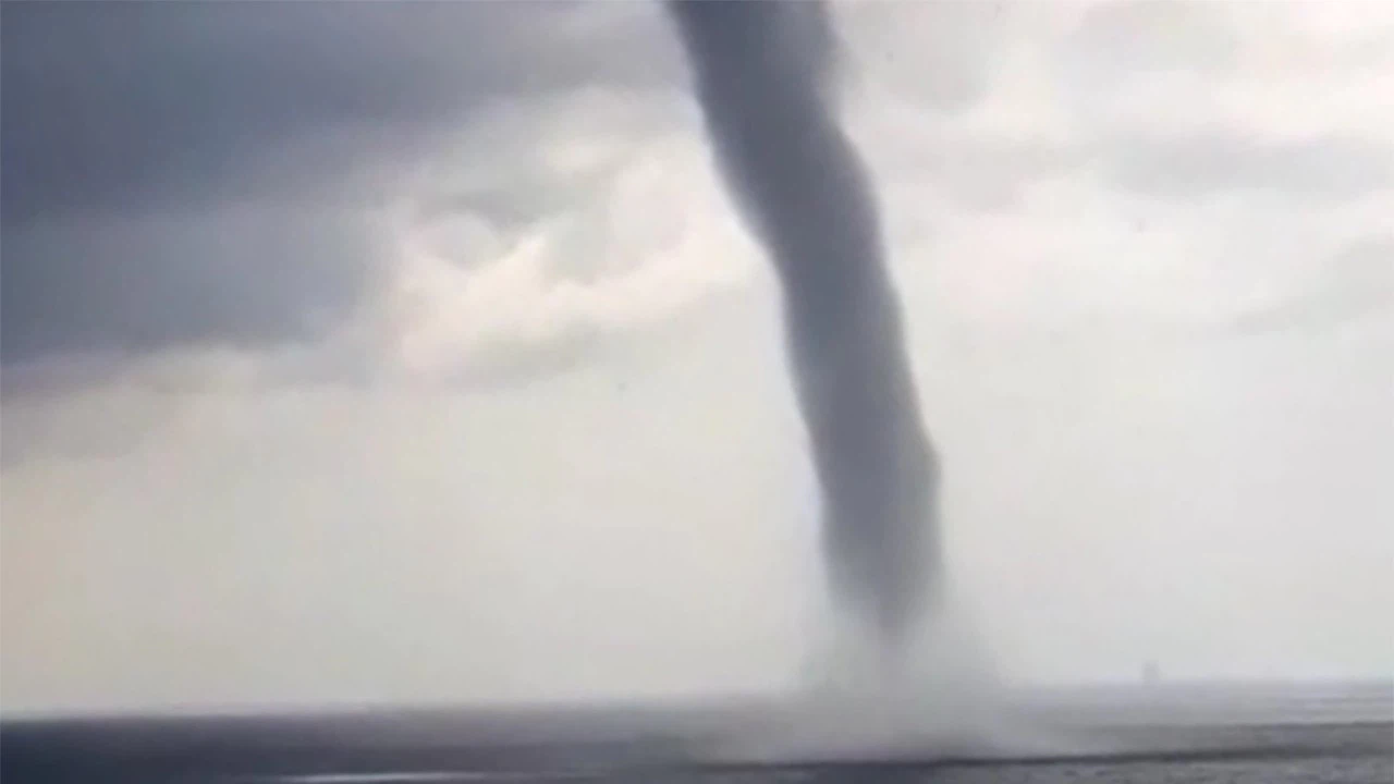 İlçenin farklı noktalarından görülebilen hortum, 15 dakika boyunca denizde ilerledi, ardından gözden kayboldu.