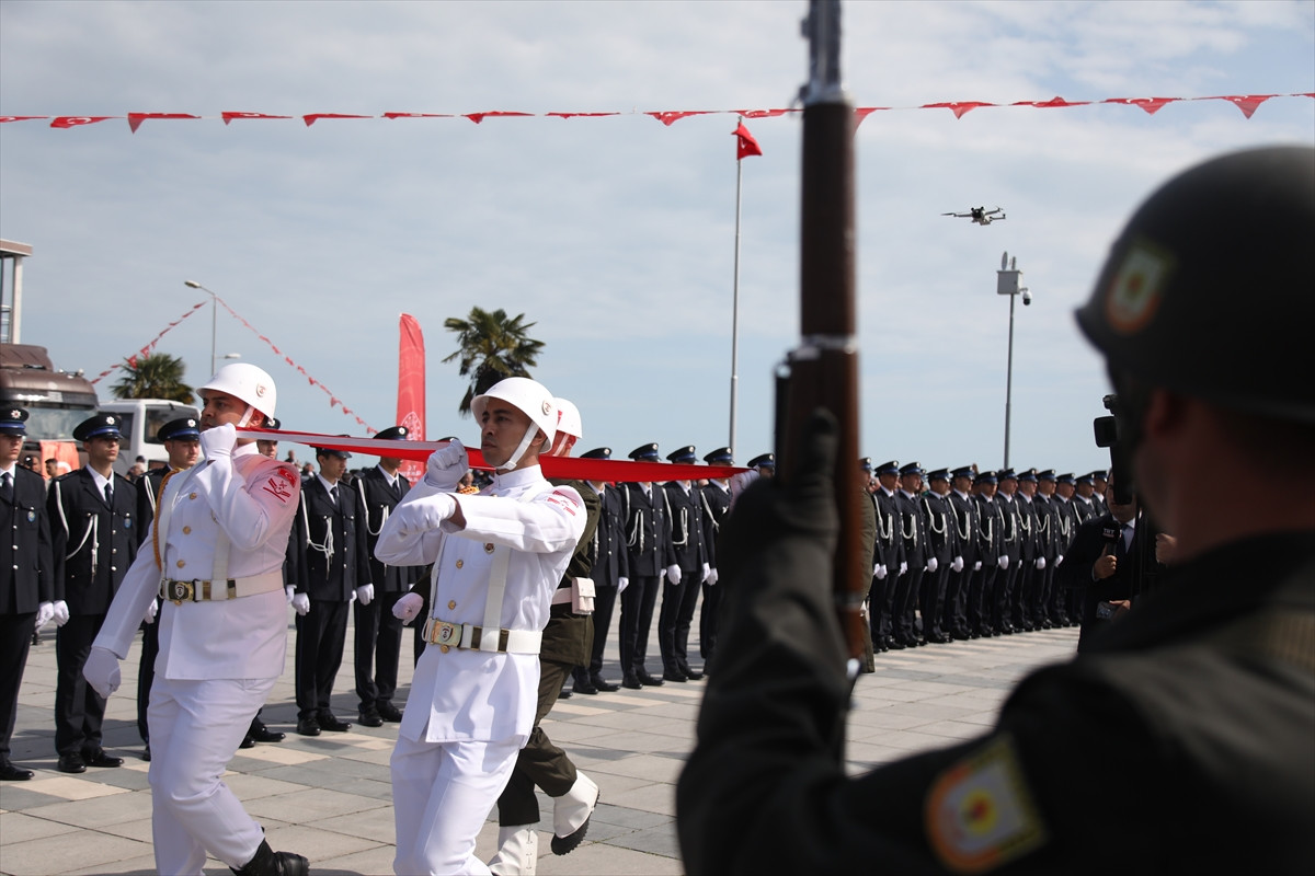 Törende askerler, Milli Mücadele'yi başlatmak üzere Mustafa Kemal Atatürk ve silah arkadaşlarının karaya çıkışını canlandırdı. Askerler, karaya çıkardıkları Türk bayrağını izcilere teslim etti. İzciler, Türk bayrağını 19 Mayıs Atatürk'ü Anma, Gençlik ve Spor Bayramı etkinliklerinin yapılacağı İlkadım Atletizm Stadyumu'na kortej eşliğinde götürdü.