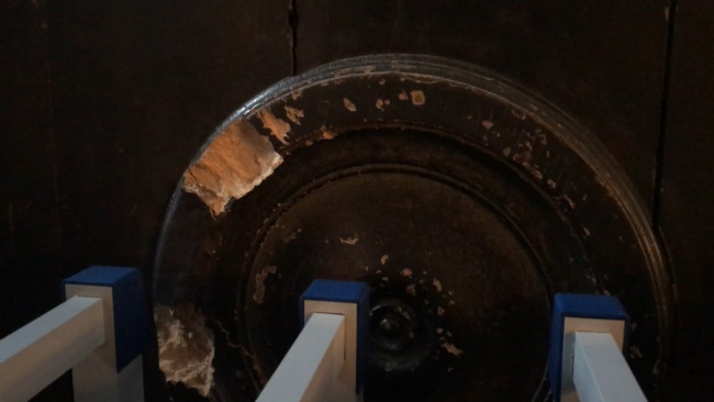 Ana salona açılan dokuz kapıdan biri olan ve yalnızca imparator tarafından kullanıldığı için 'İmparator Kapısı' adı verilen kapıdaki hasar dikkat çekti.
