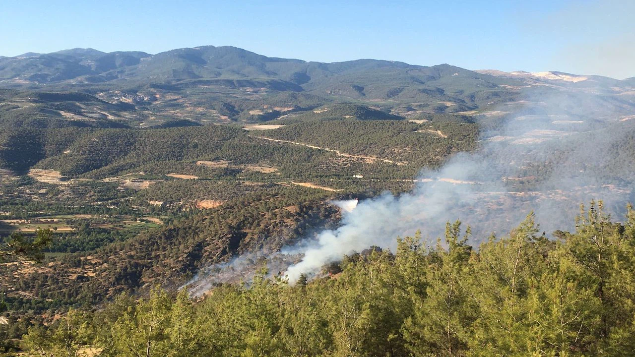 Konaklı Mahallesi Kemer Barajı yakınlarındaki ormanlık alandan yükselen dumanları görenler, orman işletme ve itfaiyeye bilgi verdi.