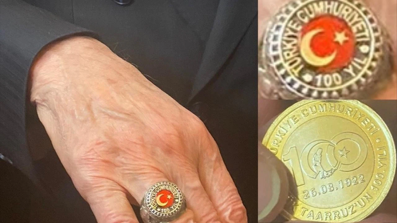 MHP Genel Başkanı Devlet Bahçeli, partisinin TBMM Grup Toplantısı'na katıldı. Bahçeli, salondan ayrılırken basın mensuplarına, Cumhuriyet'in 100. yılı için basılan 1 liralık madeni para ile parmağında yer alan ve üzerinde "Türkiye Cumhuriyeti 100 Yıl ve Türk Bayrağı" bulunan yüzüğü gösterdi.