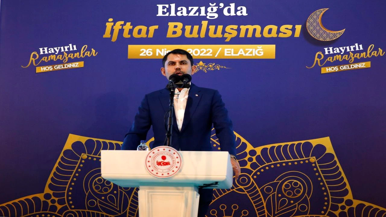 Depremzedelerle iftar yapan Kurum, burada yaptığı konuşmada, 24 Ocak 2020'de meydana gelen merkezi Sivrice ilçesi olan depremde hayatını kaybeden 41 vatandaşa Allah'tan rahmet diledi.