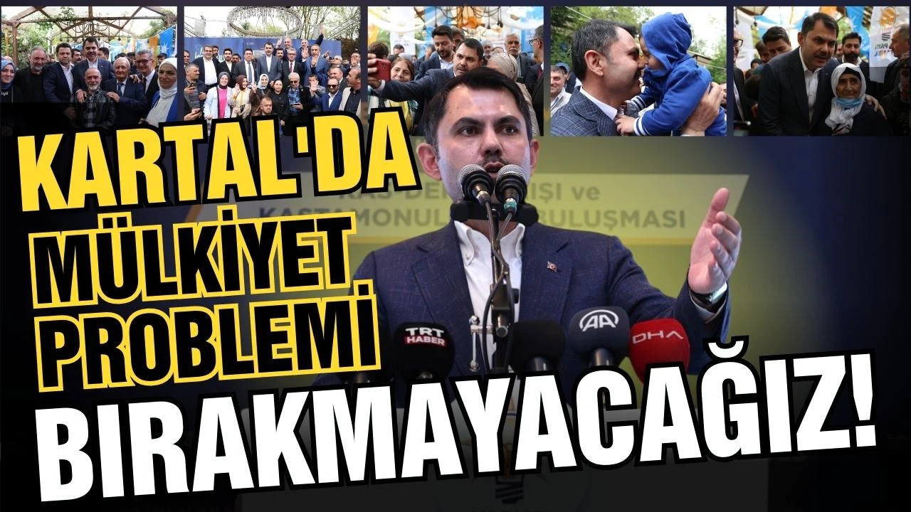 Bakan Kurum, “Kartal Orhantepe’de yüzlerce konutumuzu yükseltirken, yeni dönüşümlerimizi de başlatıyoruz. Yunus mahallemizde dönüşümü başlatıyor, Çavuşoğlu Sanayi Sitesi’ni yeni yerine taşıyor, yıllardır vatandaşımızın beklediği Kordon ve sahil boyundaki riskli alanda harıl harıl çalışıyoruz. Planlarımızı onayladık. Vatandaşlarımızın talepleri doğrultusunda Kartal’da dönüşmek isteyen tüm kardeşlerimizle el ele vereceğiz, ‘Yarısı Bizden’ diyeceğiz.” diye konuştu. Bakan Kurum, Kartal’daki mülkiyet problemi üzerine de değerlendirmede bulunarak, “Sözümüz söz. Kartal’da tek bir mülkiyet problemi bırakmayacağız. Tapusuna kavuşmayan tek bir Kartallı kalmayacak. Kartal’da hiç kimse riskli evlerde de yaşamayacak. Hepimiz yeni yuvalarımıza kavuşacağız. Kartal’ımız ve bütün mahallelerimiz için koşturacağız, eser siyasetinden vazgeçmeyeceğiz.” şeklinde konuştu.