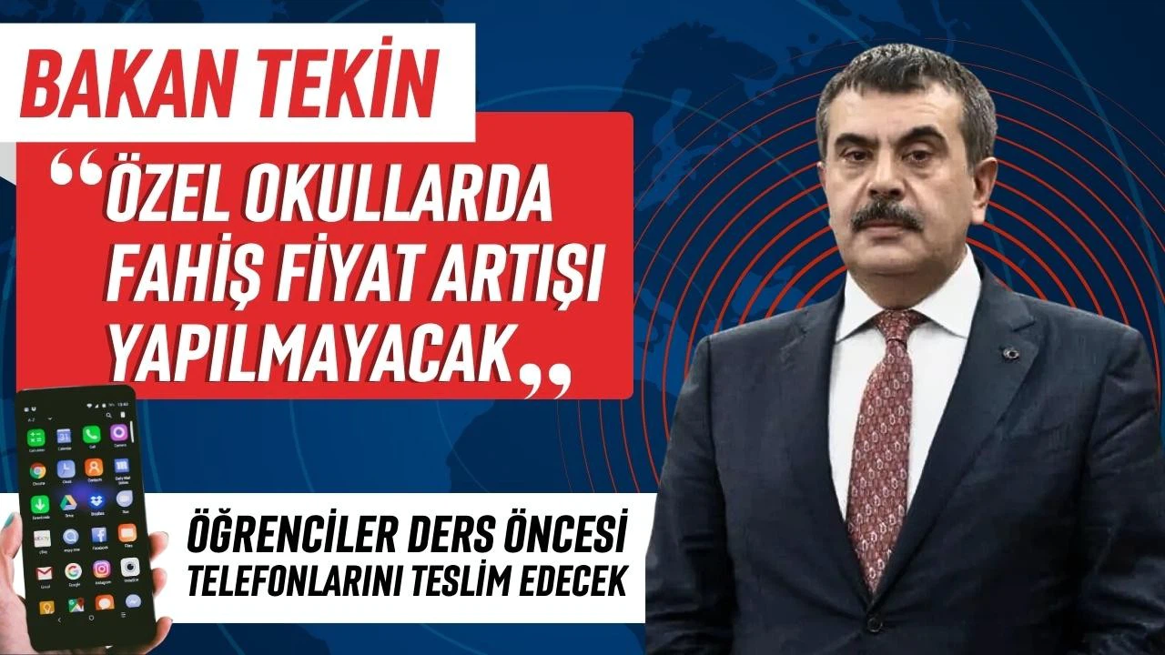 Milli Eğitim Bakanı Yusuf Tekin, AA Editör Masası'nda, eğitim gündemine ilişkin soruları yanıtlıyor. Bakan Tekin, okullarda cep telefonu kullanımına ilişkin konuşan Tekin, "Çocukların sınıflara cep telefonuyla girmemesini rica ediyoruz. Çocuklar kendilerinin veya öğretmenlerinin görüntülerini seslerini kaydedip paylaşıyorlardı. Bunun da yapılmasını istemiyoruz. Öğretmenlerimizden de rica ediyoruz" dedi.