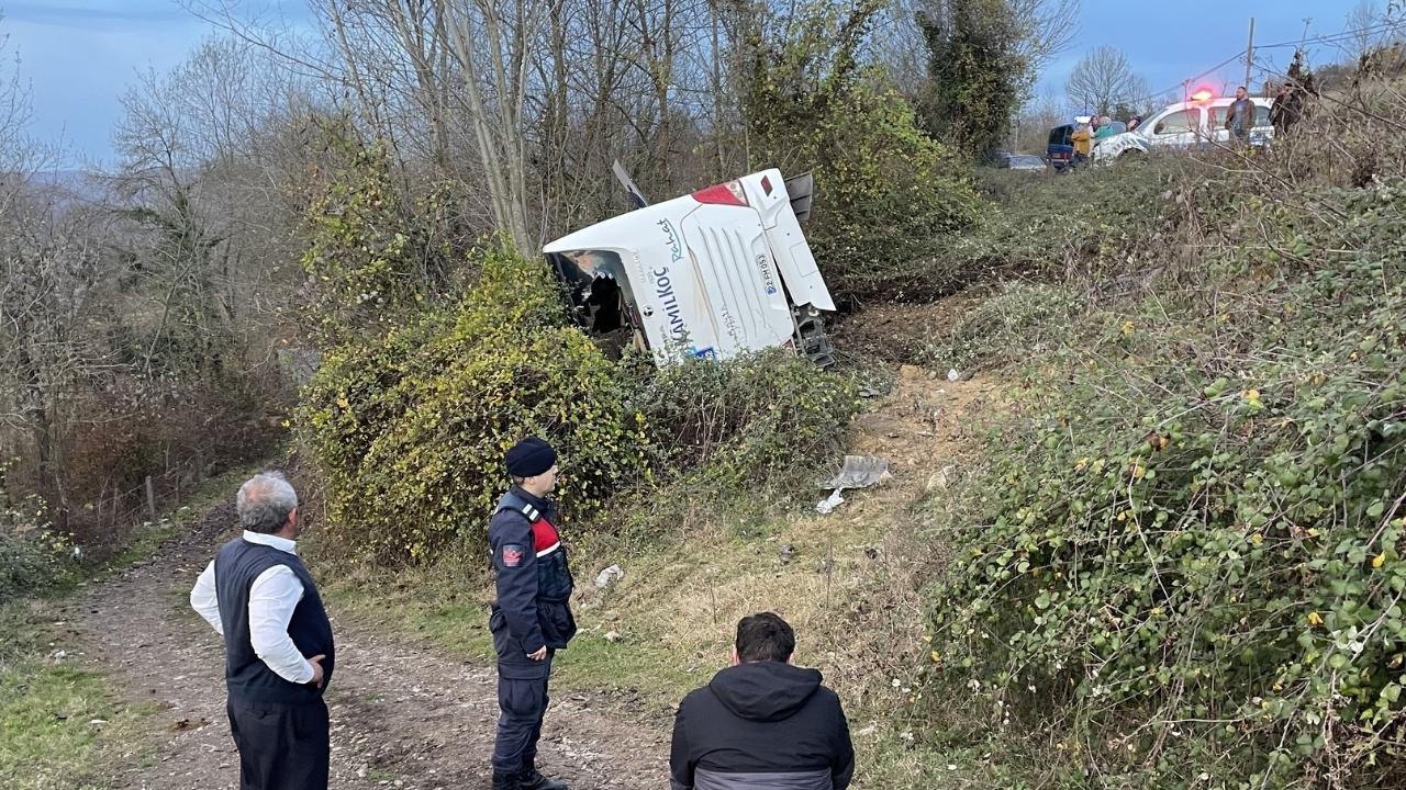 Bartın-Zonguldak kara yolu Akçamescit mevkisinde sürücüsünün kimliği henüz öğrenilemeyen 22 FM 053 plakalı yolcu otobüsü kontrolden çıkarak devrildi.